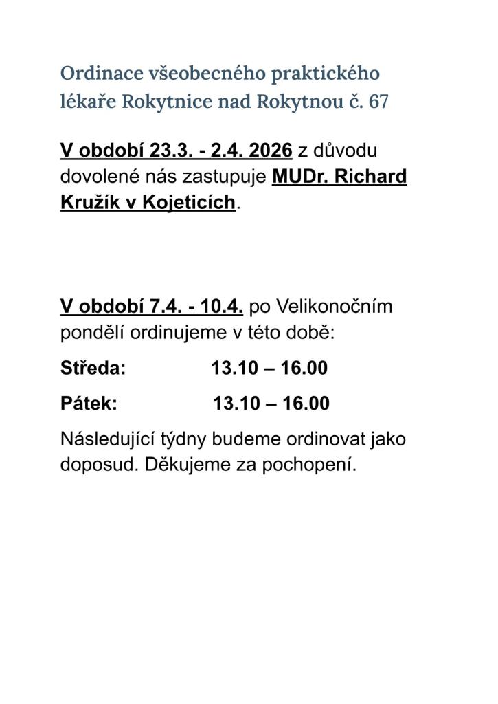 MUDr. Hodějovský DOVOLENÁ