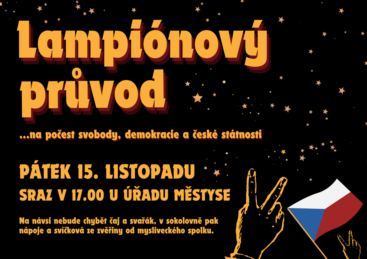V páteční podvečer jsme se vydali s předstihem oslavit 17. listopad, den boje za svobodu a demokracii lampionovým průvodem.Zahájili jsme zpěvem české hymny, po cestě jsme poznávali osobnosti naší české historie. Závěr patřil dobrému občerstvení od našich myslivců v sokolovně.